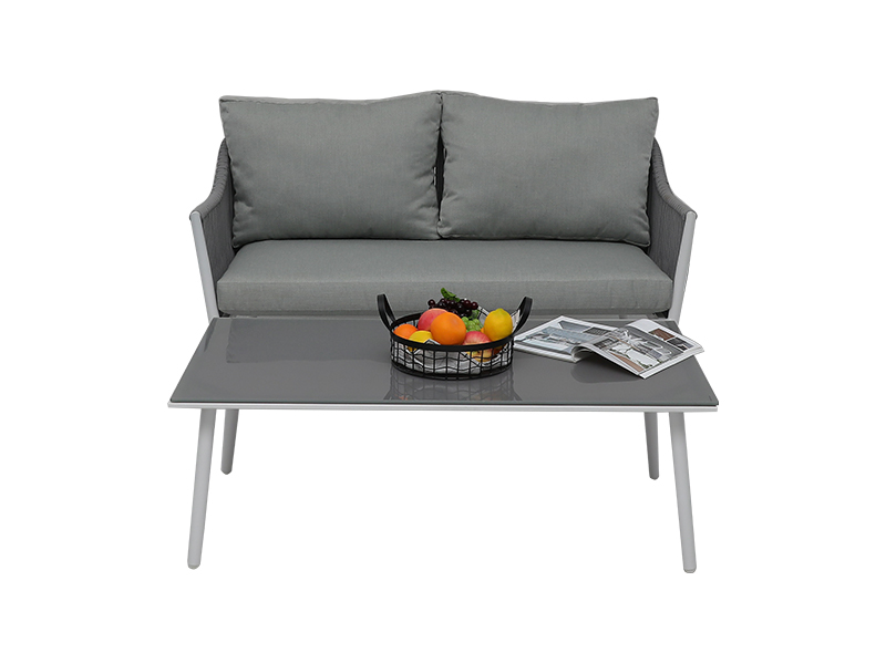 | Đặc điểm kỹ thuật | khung nhôm có dệt dây, tổng cộng 4 chiếc; Ghế yêu: L75*W135*H76cm, 1 ghế đơn: L75*W75*H76cm, 2 bàn cà phê: L114*W60*H38.5cm, kính cường lực màu xám 5mm, 1PC |