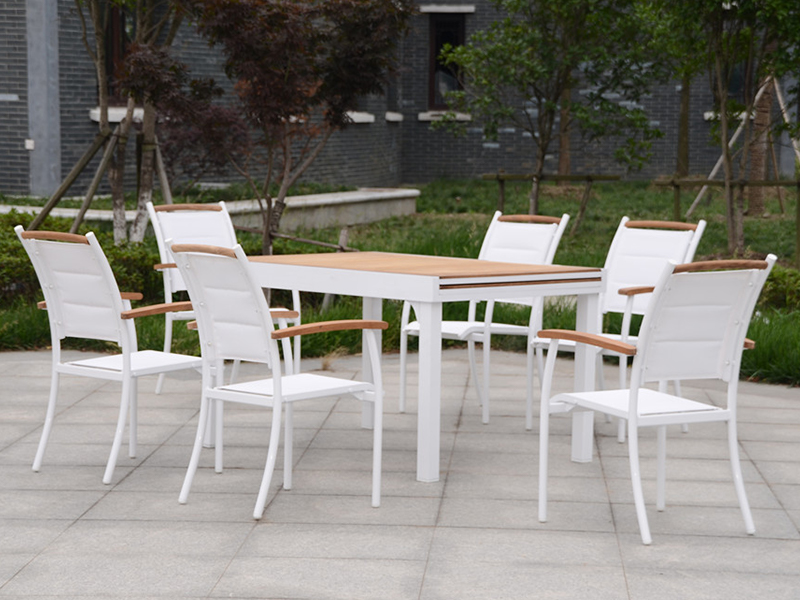 | Bàn: L135/270*W100*H77CM, mặt bàn gỗ tếch nhập khẩu, ống nhôm và vít không gỉ; Ghế:W57xD68xH94cm, ống nhôm gỗ tếch nhập khẩu, vải Textilene đôi 2x1 bên trong lót bông, vít inox | 137,5 * 14 * 102,5/mỗi bàn trong thùng carton; 21 chiếc ghế/pallet | 112 BỘ |