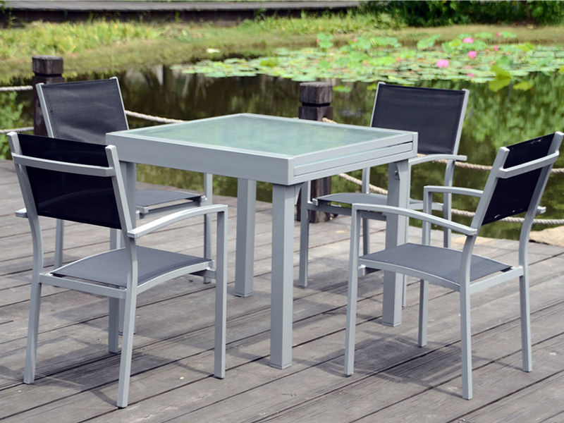 | bàn mở rộng: L90/180*W90*H75CM, kính lưới cường lực 5 mm, ống nhôm, vít không gỉ; Ghế: D61xW57xH87cm, nhôm. ống, vải 2 * 1, bệ đỡ bằng thép, vít không gỉ; | 92,5 * 12,5 * 92,5cm / một bàn trong thùng carton; 30 chiếc/pallet; | 140 BỘ |