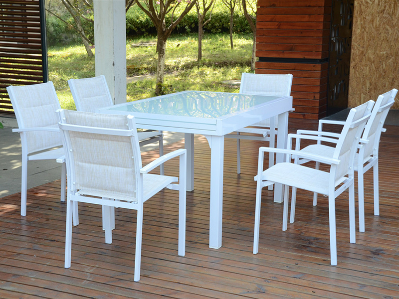 | ống nhôm vải dệt đôi 2 * 1 có bông bên trong; bàn: L135/270*W90*H77CM, kính trắng cường lực 5mm, vít không gỉ; ghế: D60xW57xH87cm, vít không gỉ | 137,5×12,5×93cm/gập xuống đầu tiên và một bàn trong thùng carton; 84 chiếc ghế/pallet | 112 BỘ |